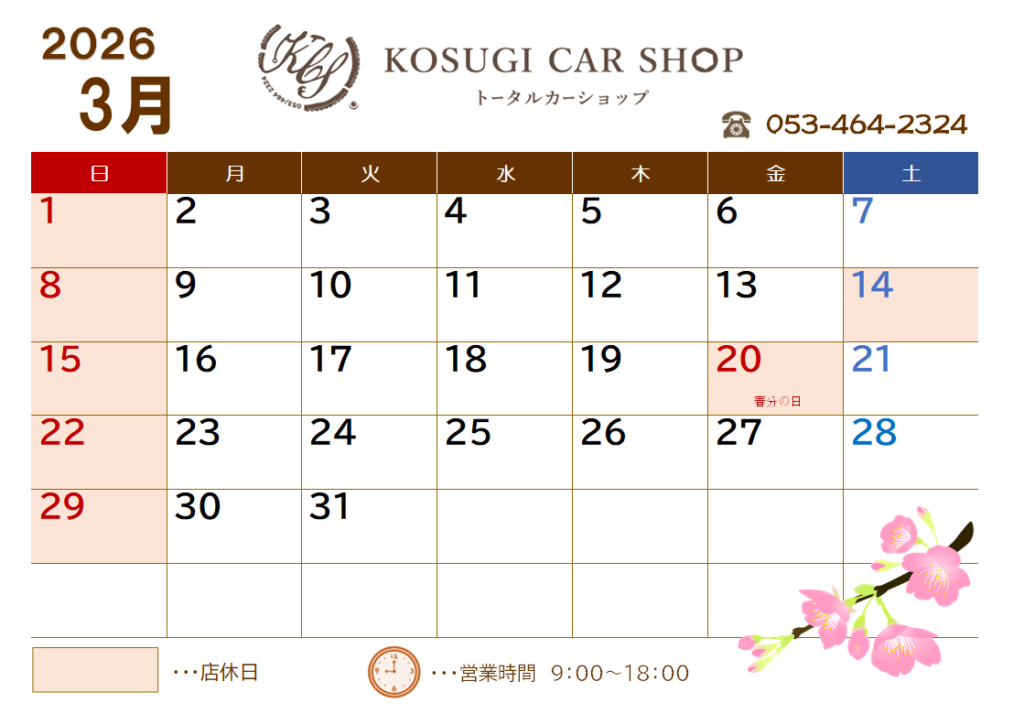 053-464-2324 / 営業時間 9:00〜18:00/日曜・祝日定休